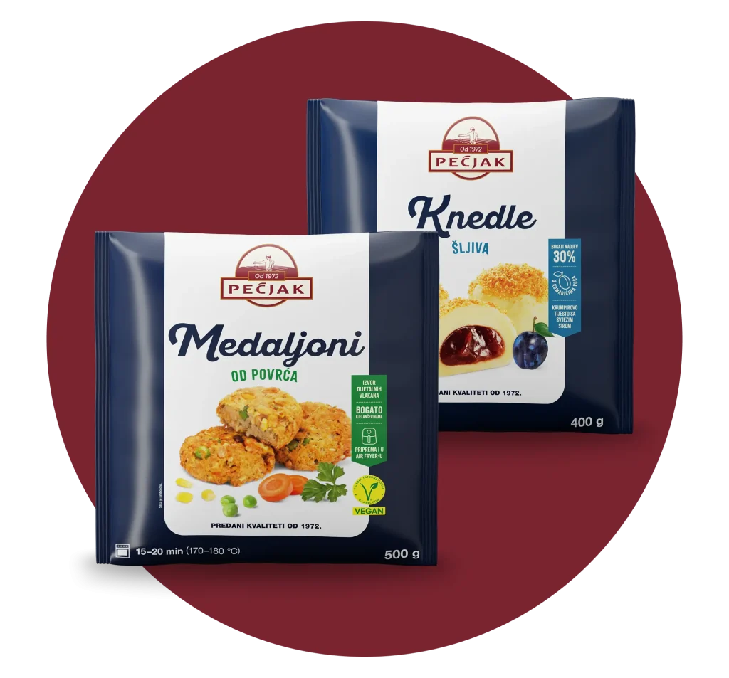 Pečjak u svojem asortimanu ima 300 različitih smrznutih i gotovih proizvoda uz više od 50 godina tradicije u proizvodnji. Na hrvatskom tržištu samostalno distribuiramo više od 100 različitih smrznutih proizvoda među kojima su najtraženiji bureci, kroasani i punjeni jastučići. Radi se o proizvodima vrhunske kvalitete, u kojima se ne štedi na punjenju, a izbjegavaju se svi nepotrebni dodaci za proizvode.